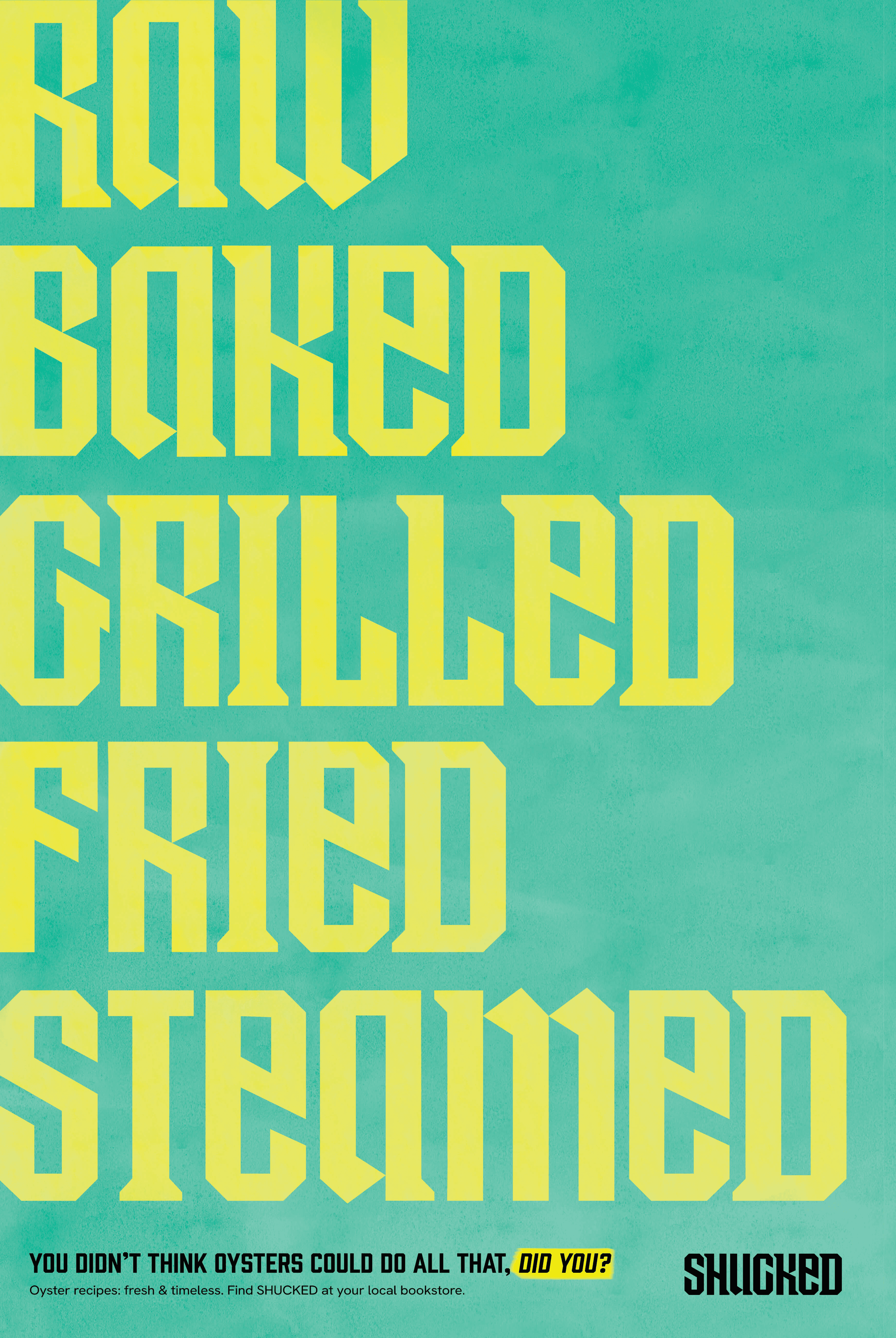 Shucked is an oyster cookbook designed to feel anything but intimidating. The book breaks oysters’ exclusive reputation through bold visuals, custom typography, and approachable storytelling that celebrates them as versatile, sustainable, and social.