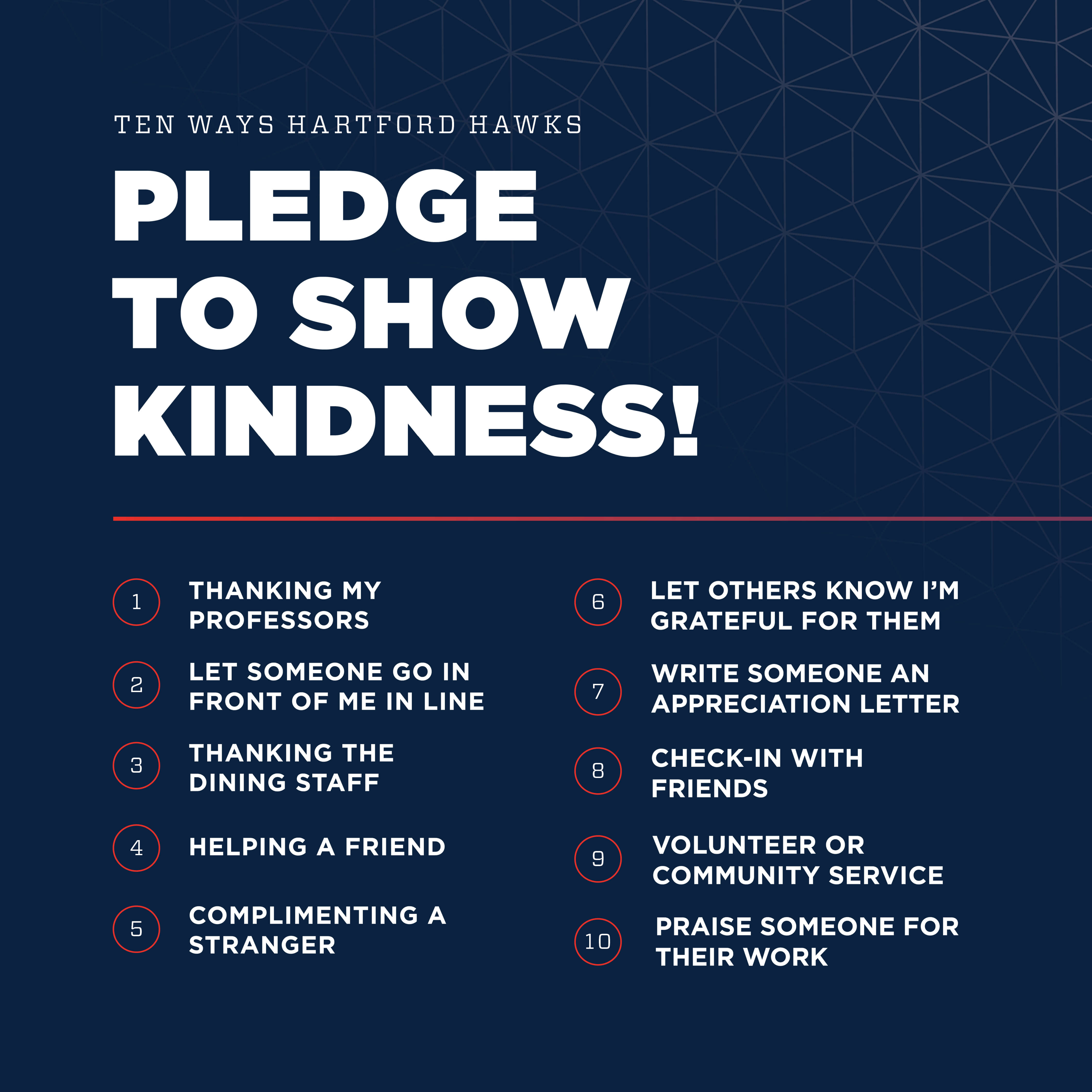 Social media graphics use many assets in the diverse University of Hartford brand toolkit. Occasional posts use one-off illustrations or special treatment for particular events or holidays. Graphics are meant to engage the campus community, inform students and faculty about university sponsored events, and celebrate relevant holidays and milestones.